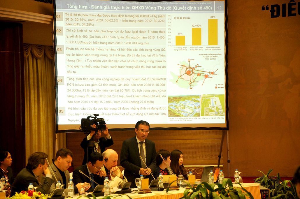 Thay mặt đơn vị tư vấn lập đồ án, Viện trưởng VIUP Ngô Trung Hải báo cáo tóm tắt nội dung Đồ án. Theo đó, phạm vi điều chỉnh quy hoạch vùng Thủ đô gồm toàn bộ ranh giới của Hà Nội với 9 tỉnh xung quanh, trong đó Phú Thọ, Thái Nguyên và Bắc Giang là 3 tỉnh được mở rộng thêm vào quy hoạch với tổng dân số 17,6 triệu người. Toàn bộ quy hoạch vùng Thủ đô sẽ có tổng diện tích trên 24.300 km2, tăng gần gấp đôi so với trước đây, chiếm 7,3% diện tích tự nhiên toàn quốc và bằng 80% diện tích so với vùng Tp. Hồ Chí Minh.