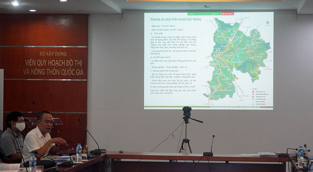 ThS.KTS Lê Anh Dũng (VIUP), thay mặt Liên danh tư vấn báo cáo tóm tắt nội dung nghiên cứu. Trong đó tập trung làm rõ về hiện trạng phát triển kinh tế - xã hội tỉnh Hà Giang hiện nay, những vấn đề trọng tâm cần nghiên cứu, tiền đề để phát triển tỉnh Hà Giang, những định hướng phát triển của tỉnh về ngành; việc tổ chức không gian các hoạt động kinh tế - xã hội theo các phân vùng; phương án quy hoạch xây dựng vùng liên huyện...