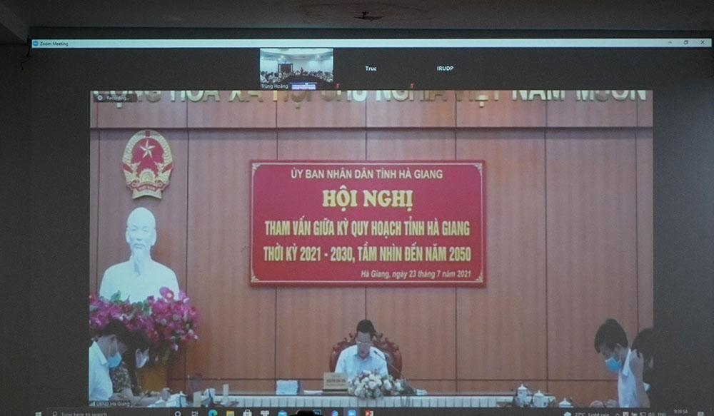 Phát biểu tại điểm cầu VIUP, Viện trưởng VIUP Lưu Đức Cường thay mặt liên danh gồm 10 đơn vị tư vấn cám ơn lãnh đạo UBND tỉnh, sở Kế hoạch đầu tư chấp thuận cho tư vấn báo cáo trực tuyến trước tình hình dịch bệnh covid-19 đang diễn biến phức tạp. Ông cho biết hợp đồng ký giữa sở Kế hoạch và đầu tư và Liên danh tư vấn vào tháng 12/2020. Ngay sau khi ký hợp đồng, tháng 1/2021 liên danh tư vấn đã tổ chức đoàn công tác làm việc 2 tuần với 10 đơn vị hành chính của tỉnh để thu thập số liệu, trao đổi chuyên môn, đặc biệt là định hướng phát triển các ngành. Tới thời điểm hiện tại, Liên danh đã hoàn thành 21 báo cáo đầu kỳ của các ngành, các lĩnh vực và 1 báo cáo tổng hợp đầu kỳ. Thời gian tới, Liên danh tiếp tục làm sâu hơn, kỹ hơn phương án phát triển các đơn vị hành chính. Liên danh tư vấn đã phối hợp với sở Kế hoạch và đầu tư tổ chức 2 cuộc tham vấn vào tháng 5 và tháng 7/2021, xin ý kiến của các sở, ban, ngành địa phương. Hiện nay báo cáo tổng hợp đã tương đối hoàn thiện về mặt cấu trúc. Liên danh mong nhận được ý kiến để tiếp tục chỉnh sửa hoàn thiện nội dung và tiếp tục bổ sung, cập nhật số liệu của báo cáo.