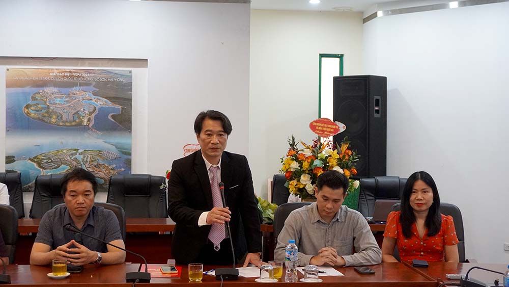 Ông Hoàng Vĩnh Hưng-Viện trưởng Viện quy hoạch đô thị và nông thôn phát biểu cám ơn Bộ trưởng Bộ Xây dựng, Thứ trưởng Nguyễn Tường Văn, Vụ Tổ chức cán bộ đã tạo điều kiện để VIUP bổ sung kịp thời ban lãnh đạo viện trong bối cảnh khối lượng và yêu cầu công việc chuyên môn, phục vụ quản lý nhà nước ngày một nhiều.