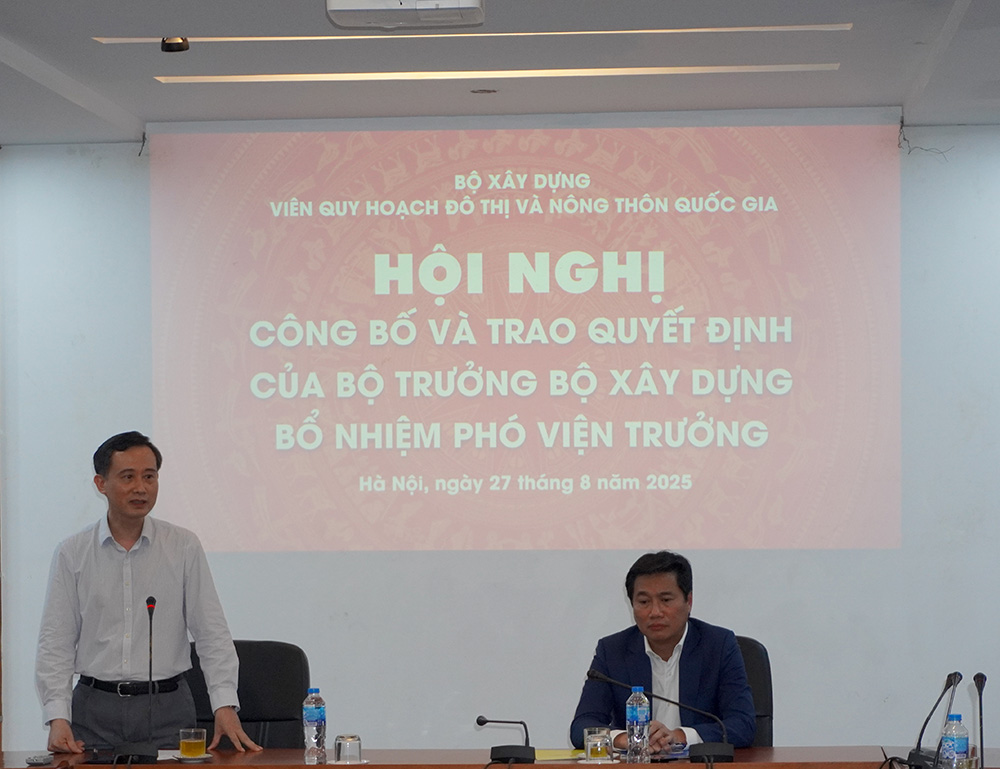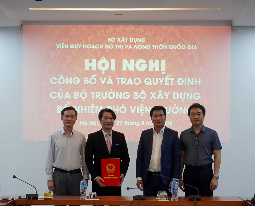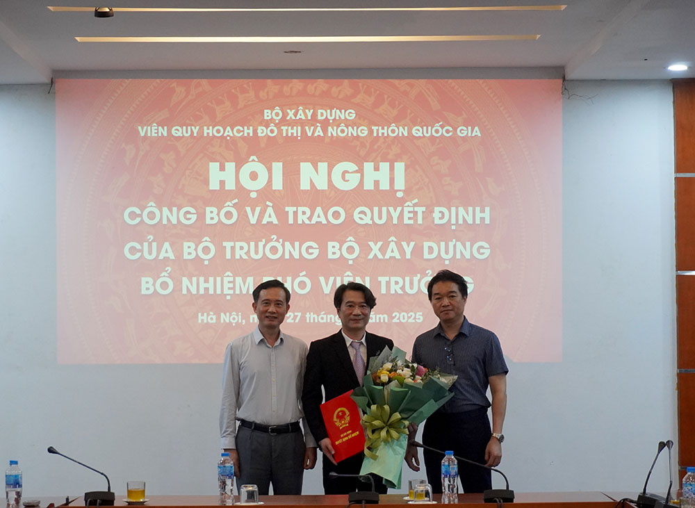 Tại buổi lễ, ông Đỗ Duy Hiển – Phó vụ trưỏng vụ tổ chức cán bộ thừa ủy quyền của Bộ trưởng Bộ Xây dựng công bố và trao quyết định số 1430/QĐ-BXD ngày 26/8/2025 của Bộ trưởng Bộ Xây dựng về việc bổ nhiệm ông Cao Sỹ Niêm giữ chức vụ Phó Viện trưởng Viện Quy hoạch đô thị và nông thôn quốc gia.