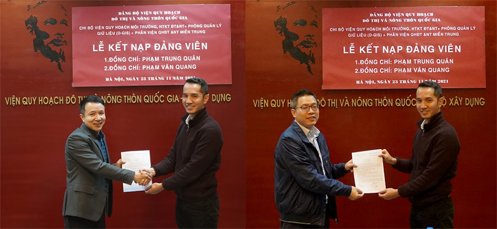 Nhân dịp này, đồng chí Phạm Thị Thanh Hoa đã chúc mừng hai đồng chí Phạm Trung Quân và Phạm Văn Quang đã được vinh dự đứng vào hàng ngũ của Đảng Cộng sản Việt Nam sau một thời gian được bồi dưỡng, thử thách. Bà mong rằng 2 đảng viên mới sẽ tiếp tục giữ gìn phẩm chất đạo đức, phấn đấu, hoàn thiện bản thân hơn nữa, phát huy vai trò của người đảng viên xây dựng chi bộ Viện QH Môi trường, HTKTĐTNT, GIS và Phân viện QHĐTNT miền Trung ngày càng vững mạnh góp phần vào thành công chung của VIUP. Phó Viện trưởng Phạm Thị Thanh Hoa cũng yêu cầu chi bộ phân công các đảng viên chính thức trong chi bộ tiếp tục giúp đỡ, dìu dắt 2 đồng chí đảng viên mới trong thời gian thử thách 12 tháng.