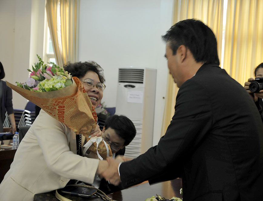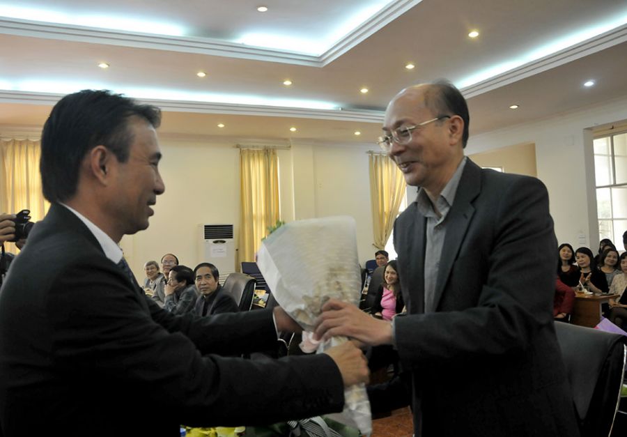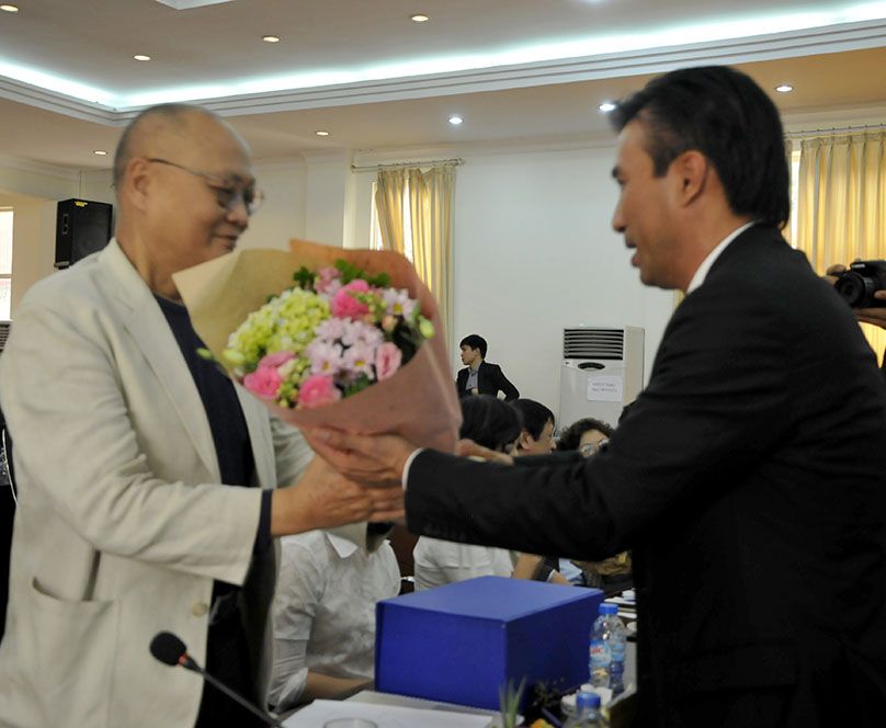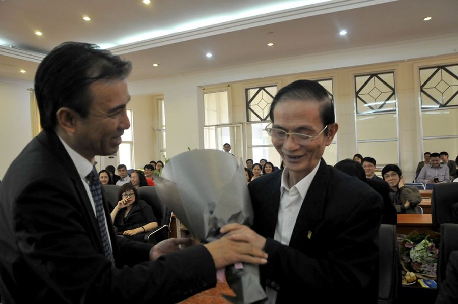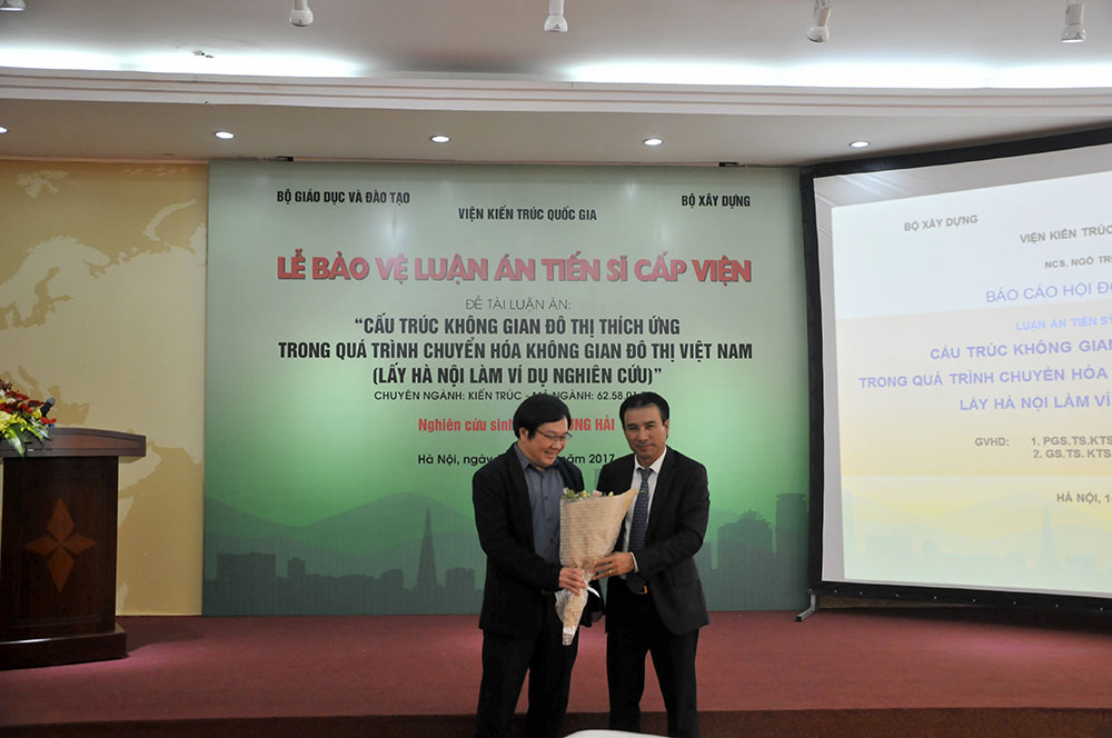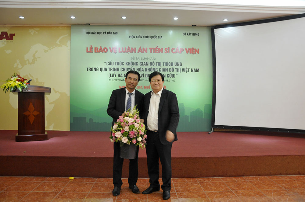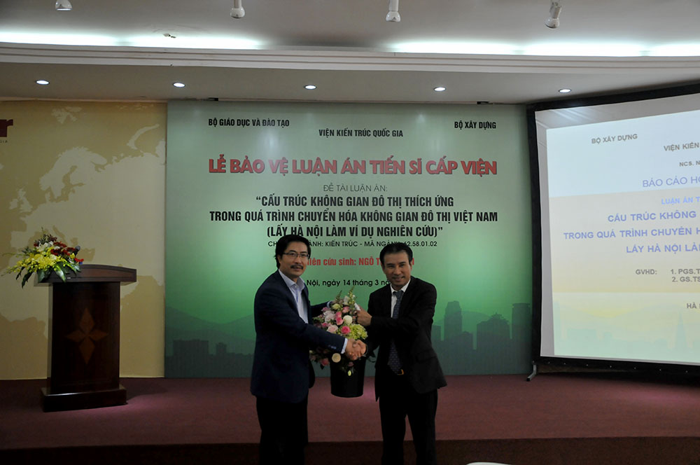 Viện trưởng Viện Kiến trúc quốc gia Đõ Thanh Tùng chúc mừng nghiên cứu sinh Ngô Trung Hải