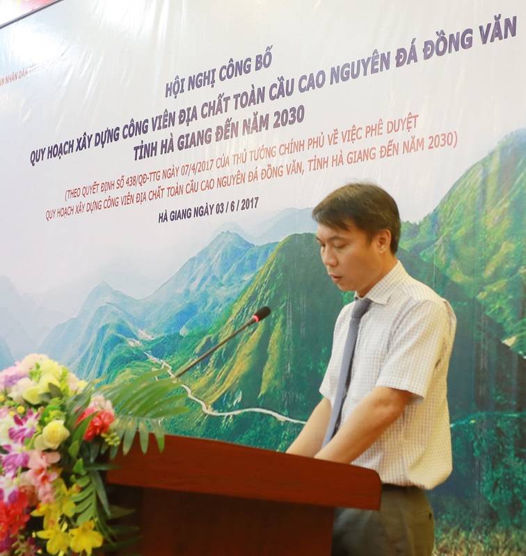 Tại Hội nghị, ông Nguyễn Chí Ngọc - Phó Vụ trưởng Vụ Quy hoạch kiến trúc (Bộ Xây dựng) đã công bố Quyết định số 438 ngày 7/4/2017 của Thủ tướng Chính phủ về phê duyệt Quy hoạch xây dựng Công viên địa chất toàn cầu Cao nguyên đá Đồng Văn, tỉnh Hà Giang đến năm 2030.