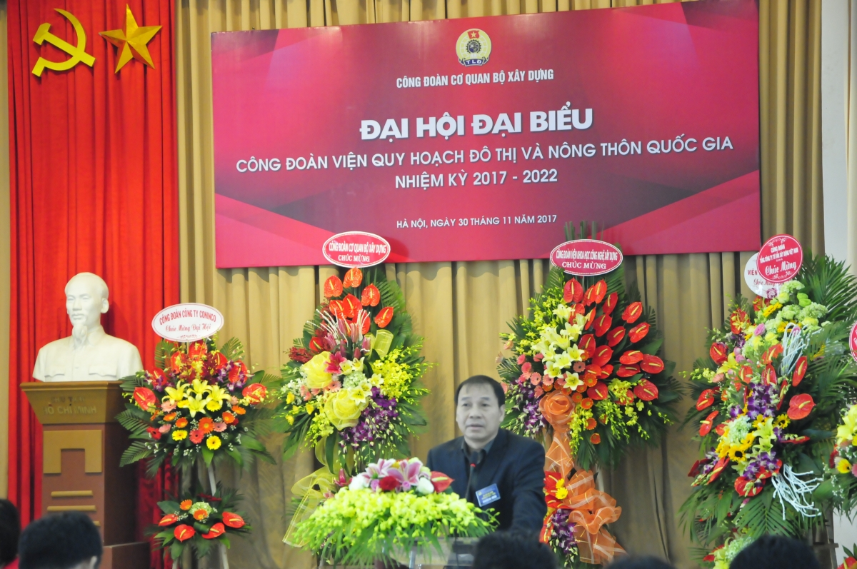 Thay mặt BCH công đoàn nhiệm kỳ 20012-2017, Chủ tịch Công đoàn Vũ Ngọc Tuấn đã trình bày báo cáo hoạt động công đoàn nhiệm kỳ 2012-2017 và phương hướng hoạt động công đoàn nhiệm kỳ 2017-2022. Trong nhiệm kỳ vừa qua, các hoạt động của công đoàn Viện Quy hoạch Đô thị và Nông thôn quốc gia đã có những đóng góp đáng kể vào thành tích chung của Viện. Bên cạnh việc tham gia tích cực vào công tác chuyên môn , nghiên cứu và tư vấn, công đoàn có nhiều hoạt động phong phú, có tác dụng gắn kết cán bộ trong đơn vị và động viên tinh thần lao động, tạo môi trường làm việc đoàn kết. Tuy mức thu nhập bình quân hàng tháng trong từng đơn vị, từng mảng công việc có khác nhau nhưng nhìn chung đời sống cán bộ đoàn viên công đoàn được cải thiện.