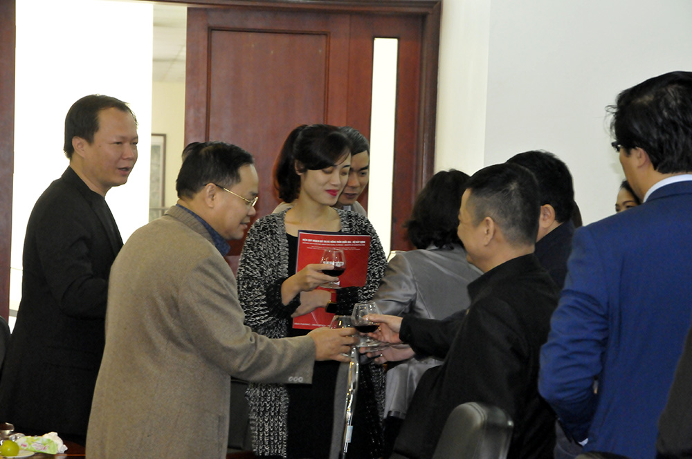 Sau khi nghe các đồng chí Phó Viện trưởng chúc Tết, các cán bộ cùng nâng ly, chúc nhau những lời chúc tốt đẹp.