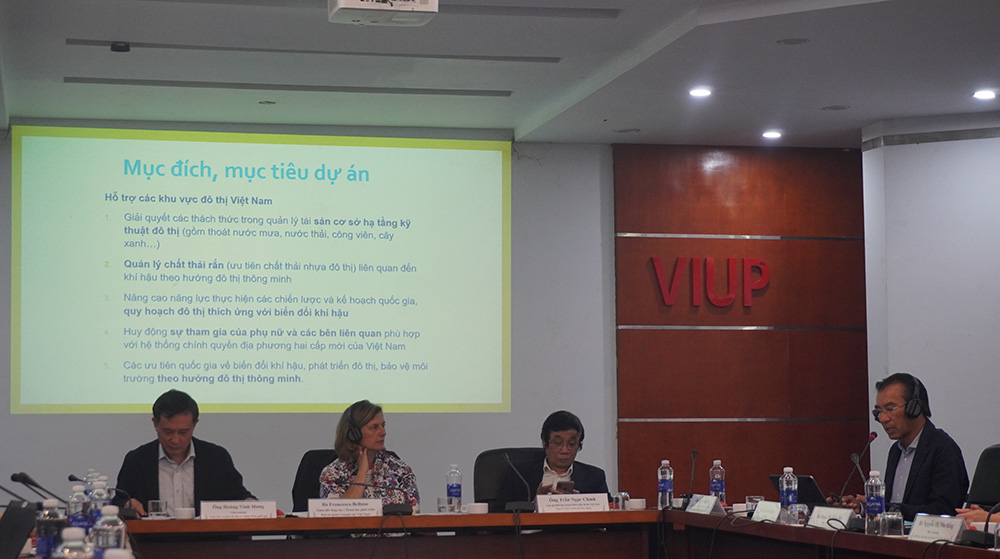 Mục tiêu cuộc họp nhằm giới thiệu và chia sẻ nội dung Dự án liên quan đến quản lý đô thị thích ứng/chống chịu biến đổi khí hậu trong quản lý tài sản cơ sở hạ tầng kỹ thuật đô thị (gồm thoát nước mưa, nước thải, công viên, cây xanh…) và quản lý chất thải rắn (ưu tiên chất thải nhựa đô thị) liên quan đến khí hậu theo hướng đô thị thông minh thông qua nâng cao năng lực thực hiện các chiến lược và kế hoạch quốc gia, quy hoạch đô thị thích ứng với biến đổi khí hậu, huy động sự tham gia của phụ nữ và các bên liên quan, quản lý chất thải rắn có sự tham gia của phụ nữ và cộng đồng khu vực đô thị;