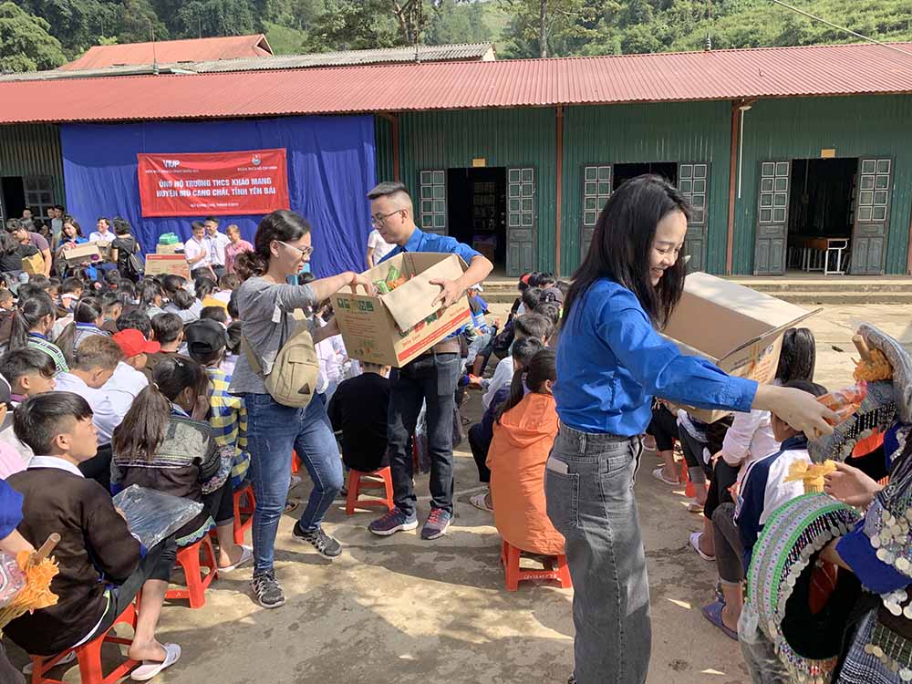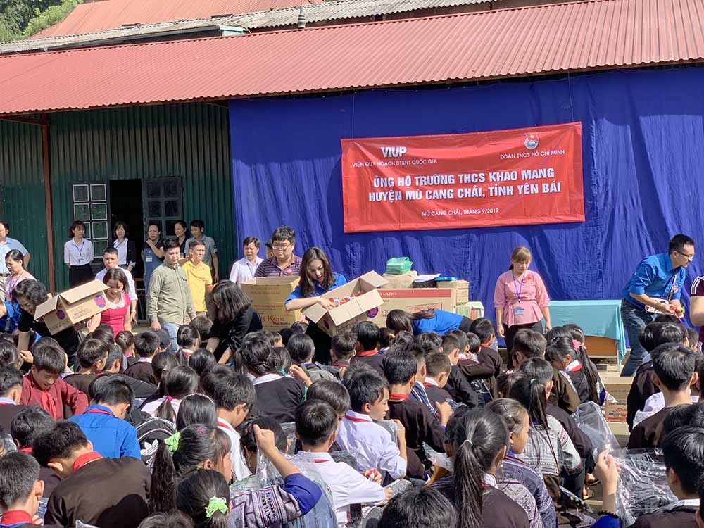 Mù Cang Chải là một huyện vùng cao Tây Bắc với dân số hơn 95% là người dân tộc thiểu số Mông. Huyện Mù Cang Chải là một trong số các huyện xa xôi và nghèo nhất của tỉnh Yên Bái. Tuy nhiên, dường như khoảng cách về địa lý và khó khăn trong việc di chuyển bởi địa hình đồi núi để đến với trường THCS Khao Mang đã tan biến khi các đoàn viên VIUP nhìn thấy những khuôn mặt rạng rỡ của các học sinh nơi đây và chứng kiến niềm vui, sự háo hức khi các em nhận quà tặng của đoàn cũng như sự cảm kích của nhà trường.