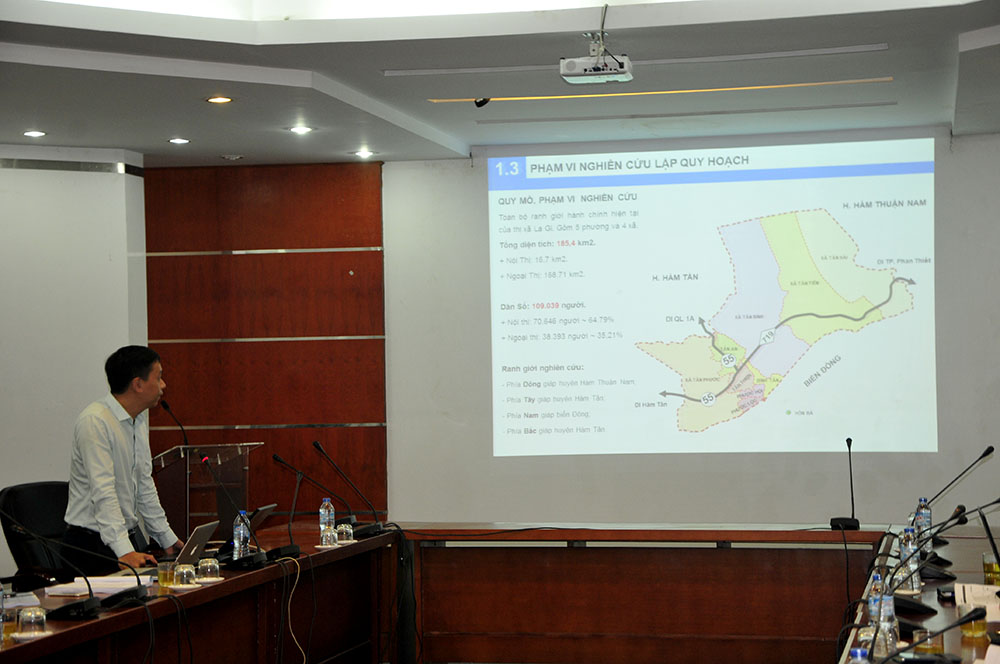 Theo đó, phạm vi, ranh giới nghiên cứu có diện tích 185,4km2 gồm toàn bộ ranh giới hành chính hiện tại của thị xã La Gi. Phía Đông: giáp huyện Hàm Thuận Nam; Phía Tây giáp huyện Hàm Tân; Phía Nam giáp biển Đông; Phía Bắc: giáp huyện Hàm Tân.