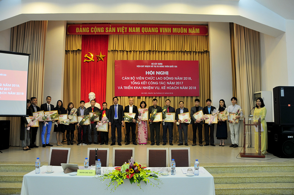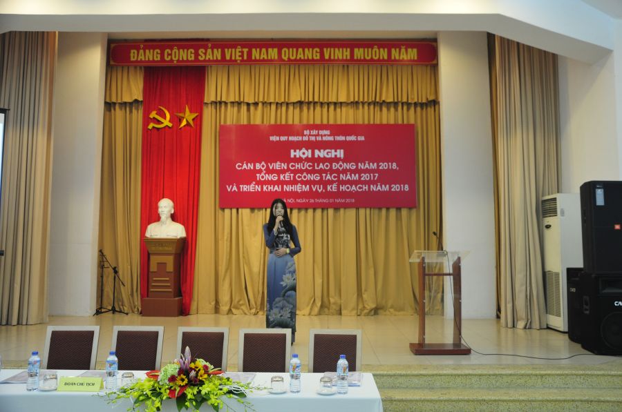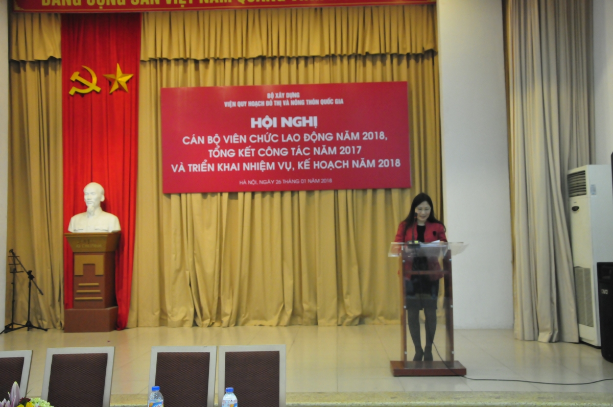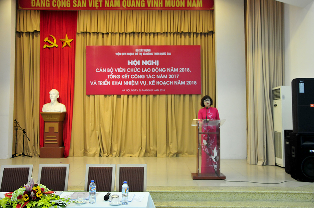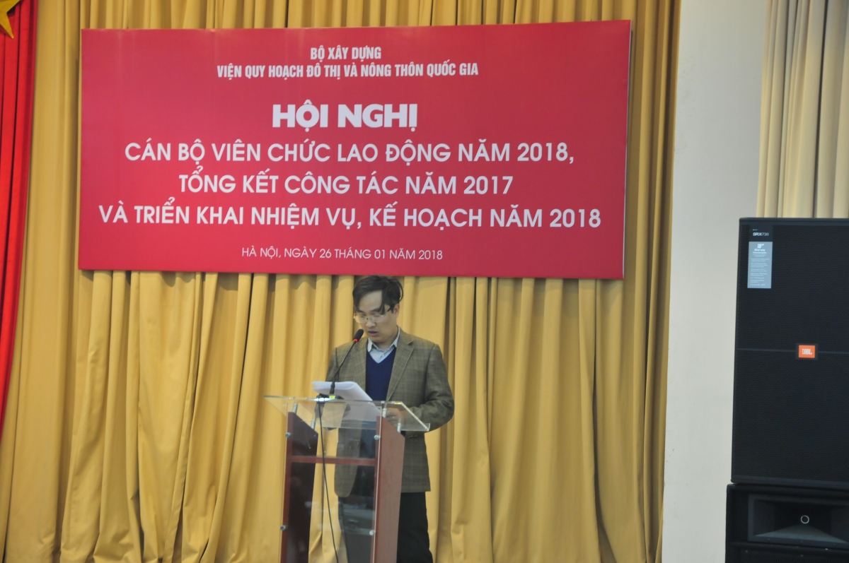 Thay mặt cán bộ Viện, Q. Viện trưởng Lưu Đức Cường đã báo cáo tình hình thực hiện nhiệm vụ kế hoạch năm 2017 và phương hướng nhiệm vụ trọng tâm năm 2018. Báo cáo tập trung vào công tác phục vụ quản lý nhà nước trong lĩnh vực quy hoạch, kiến trúc; Công tác nghiên cứu khoa học; Công tác tư vấn quy hoạch, kiến trúc thuộc chức năng nhiệm vụ của Viện; Công tác điều hành quản lý Viện; Công tác Đảng, công tác đoàn thể; Hoạt động của các hội nghề nghiệp.