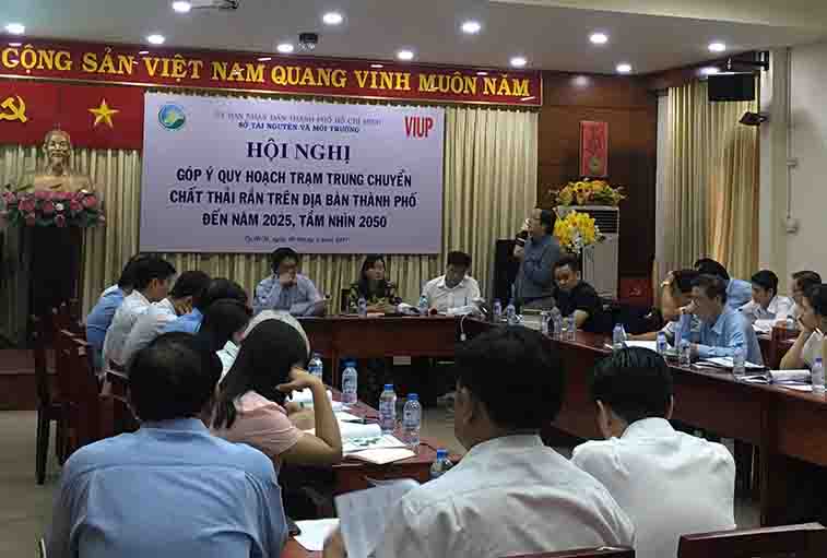 Thay mặt nhóm, ThS.KS Vũ Tuấn Vinh đã báo cáo nội dung tóm tắt của chuyên đề. Từ nghiên cứu về hiện trạng hệ thống các trạm trung chuyển CTR trên địa bàn thành phố Hồ Chí Minh, nhóm đã đưa ra định hướng quản lý hệ thống trạm trung chuyển trên địa bàn và đề xuất giải pháp cho hệ thống trạm trung chuyển trên địa bàn thành phố. Một số đề xuất giải pháp công nghệ và các thông số kỹ thuật cho các trạm trung chuyển bao gồm: Trạm trung chuyển có tường rào, mái che, hệ thống xử lý nước rỉ rác; hệ thống hút, lọc, khử mùi; Trạm trung chuyển có khu ép riêng cho chất thải vô cơ và chất thải hữu cơ (có khu lưu chưa chất thải y tế, chất thải nguy hại, chất thải xây dựng – theo quy hoạch) và thiết lập hệ thống quan trắc môi trường thường xuyên. Về quy hoạch, cụ thể kế hoạch triển khai quy hoạch trạm trung chuyển như sau: đến năm 2025 có 27 trạm trung chuyển trong đó có 16 trạm đạt chuẩn, 11 trạm có đầu tư hệ thống hạ tầng bảo vệ môi trường, các trạm tạm thời sẽ phải loại bỏ, hình thành thêm 01 trạm xử lý CTR cục bộ tại Cần Giờ; đến sau năm 2025 có 15 trạm trung chuyển và 03 trạm trung chuyển cấp thành phố.