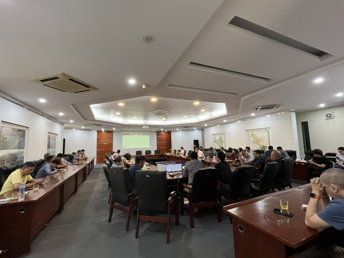 Viện trưởng Hoàng Vĩnh Hưng, Phó Viện trưởng Phạm Thị Nhâm, các đồng chí trong Ban Chấp hành Đảng ủy, bí thư, phó bí thư các chi bộ và các đảng viên VIUP tham dự Hội nghị tại điểm cầu VIUP.