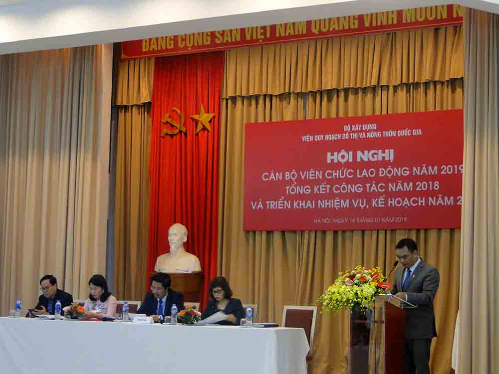 Tại hội nghị cán bộ viên chức lao động, đồng chí Chủ tịch Công đoàn Vũ Ngọc Tuấn trình bày báo cáo tổng kết hoạt động Công đoàn Viện năm 2018 và Phương hướng hoạt động năm 2019. Đồng chí Phạm Thị Bích Vân, trưởng ban thanh tra nhân dân đã trình bày Báo cáo hoạt động của ban thanh tra nhân dân năm 2018. Hội nghị được nghe tham luận của đồng chí Phạm Thị Huệ Linh (GĐ Trung tâm QHXD 4), Đoàn Trịnh Tùng (GĐ Cung triển lãm Kiến trúc, Quy hoạch xây dựng quốc gia); Đặng Xuân Tiến (Giám đốc Phân viện QH đô thị và nông thôn miền Trung) chia sẻ những tâm tư nguyện vọng, mong muốn tới ban lãnh đạo.