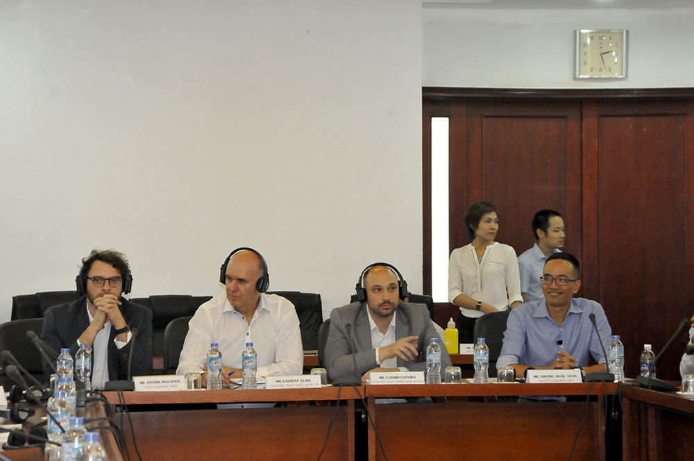 Các KTS Pháp cũng giới thiệu về tổ chức, công ty của mình. Theo đó, họ dành sự quan tâm lớn tới lĩnh vực bảo vệ di sản, quy hoạch đô thị và kiến trúc xanh. Các công ty muốn tìm hiểu quy trình thực hiện dự án ở Việt Nam, những dự án trong lĩnh vực nào được chính phủ Việt Nam quan tâm, cách thức hợp tác với VIUP, những dự án có thể hợp tác với VIUP trong thời gian tới… Các câu hỏi của phía Pháp đã được các chuyên gia Việt Nam giải đáp tận tình. Chuyên gia VIUP cũng dành sự quan tâm tới những khó khăn, vướng mắc của các công ty Pháp đang hoạt động tại Việt Nam, những đề xuất của họ trong việc thực hiện dự án.