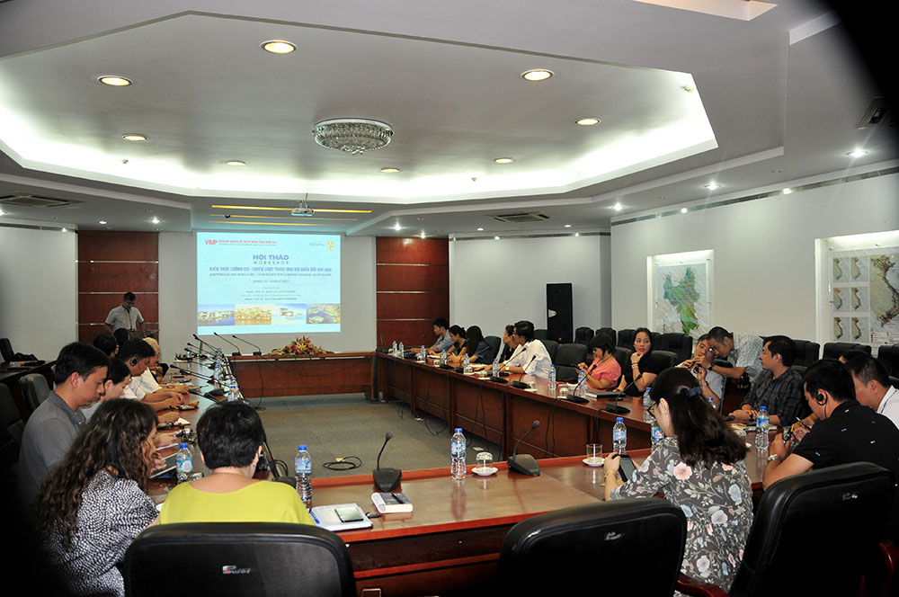 Phát biểu khai mạc hội thảo, Q. Viện trưởng Lưu Đức Cường cho biết những năm vừa qua các đô thị, các điểm dân cư trên thế giới đang phải đương đầu với đô thị hóa mất kiểm soát, ô nhiễm, ùn tắc, ngập lụt, sụt lún mặt đất, xâm nhập mặn, các hiện tượng thời tiết cực đoan... Tác động này có xu hướng ngày càng trầm trọng hơn. Đây là thách thức mà công tác thiết kế cấp độ đô thị, cấp độ công trình sẽ phải giải quyết vấn đề này. Chính thách thức này góp phần định hình công tác thiết kế, từ đó xác định hình thái đô thị. Kinh nghiệm quốc tế trong những năm vừa qua cho thấy kiến trúc lưỡng cư là một trong những giải pháp ứng phó với tác động của ngập lụt. Việt Nam là 1 trong 3- 5 nước chịu tác động lớn của BĐKH tùy theo tiêu chí. Trong những tác động đó, ngập lụt là tác động nghiêm trọng nhất. Ngập lụt tại các đô thị Việt Nam những năm qua ngày càng gia tăng đặc biệt là ở các đô thị ven biển. Tiếp đó, ông trình bày sơ lược về Chương trình hành động ứng phó với BĐKH giai đoạn 2014-2020 của Bộ Xây dựng trong đó tập trung vào đề xuất các giải pháp giảm thiểu tác động của BĐKH. Chương trình cũng nhấn mạnh 1 trong những công việc cần thực hiện là công tác tăng cường hợp tác quốc tế trong nghiên cứu thiết kế quy hoạch kiến trúc và công nghệ xây dựng. Nhân dịp này ông cũng giới thiệu các đề tài, dự án mà VIUP chủ trì thực hiện hoặc hợp tác với các tổ chức quốc tế đã và đang thực hiện trong lĩnh vực này.