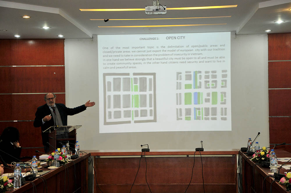 Đại biểu tham gia hội thảo còn được nghe các chuyên gia quốc tế đến từ công ty AFH and partners và công ty Codinachs Architects là những người có kinh nghiệm hiện đang tham gia thực hiện tư vấn tại Việt Nam trình bày kinh nghiệm về lập quy hoạch chung và quy hoạch chi tiết ở Việt Nam, quy hoạch đô thị tại Barcelona, Tây Ban Nha cũng như một số dự án của họ.