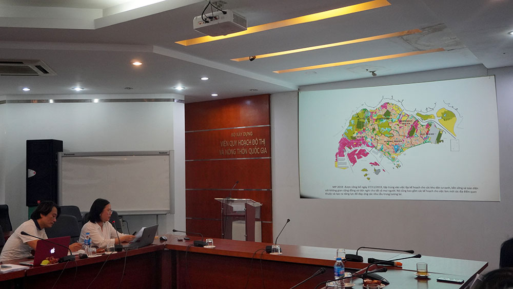 Trong bài tham luận “Kinh nghiệm quy hoạch và quản lý quy hoạch của Singapore”, ThS.KTS Nguyễn Thị Hồng Vân (Phòng Quản lý khoa học kỹ thuật –VIUP) đánh giá các bước lập quy hoạch của Việt Nam khá tương đồng với quy hoạch Singapore, trong đó có thể coi QHC tương đương quy hoạch ý tưởng (concept plan), QHPK tương đương quy hoạch chung (master plan) và QHCT, dự án đầu tư tương đương dự án phát triển của Singapore. Tuy nhiên, QHYT xác định tầm nhìn và mục tiêu dài hạn, tập trung trung vào các định hướng lớn về giao thông và sử dụng đất, xác định khung cấu trúc phát triển đô thị, trong khi nội dung QHC của Việt Nam ngoài xây dựng tầm nhìn và các định hướng phát triển không gian thì đã xác định các chỉ tiêu sử dụng đất cho các chức năng cụ thể một cách chi tiết. Bà cho rằng, đồ án QHC cần đổi mới theo hướng tập trung vào các chiến lược vĩ mô, dài hạn, xây dựng khung định hướng phát triển đô thị, xác định các vùng bảo vệ, bảo tồn tự nhiên, khống chế các chỉ tiêu hạ tầng chính đô thị. Nghiên cứu dân số bền vững để xác định nhu cầu đất đai và hạ tầng cho dài hạn, xây dựng chính sách phù hợp đảm bảo phát triển đô thị bền vững. Đối với QHPK, cần có các chỉ tiêu sử dụng đất cụ thể để kiểm soát phát triển đô thị, đặc biệt tại các phân khu lõi trung tâm có nhiều nguy cơ quá tải, mặt khác cũng cần các giải pháp để thúc đẩy sử dụng đất linh hoạt và hỗn hợp nhằm nâng cao hiệu quả sử dụng đất đai. Bên cạnh đó, cần tham vấn các bên liên quan và cộng đồng, ban hành các quy định, hướng dẫn rõ ràng và xây dựng hệ thống thông tin đầy đủ, minh bạch và dễ tiếp cận.