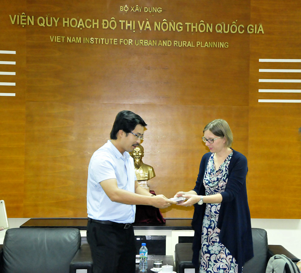 Trước lễ khai giảng khóa học trên, Q. Viện trưởng Viện Quy hoạch đô thị và nông thôn quốc gia Lưu Đức Cường và Phó Viện trưởng Phạm Thị Nhâm đã dành thời gian tiếp bà Annika Kaipola, Tham tán công sứ, Đại sứ quán Phần Lan tại Hà Nội.
