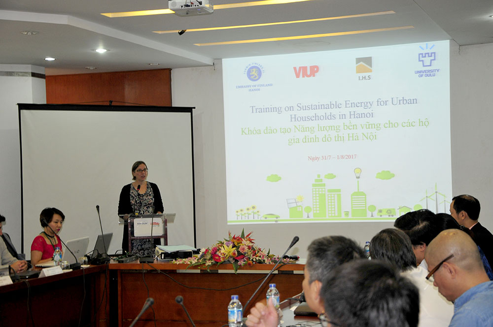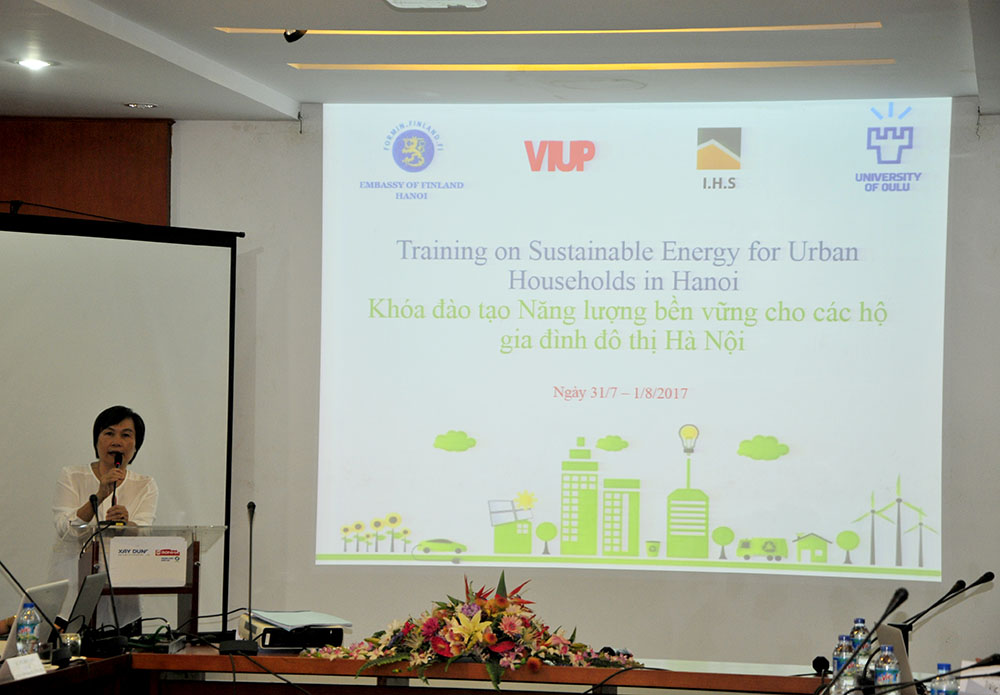 Phát biểu tại buổi khai mạc, Quyền Viện trưởng VIUP Lưu Đức Cường cho rằng khóa đào tạo này rất có ý nghĩa trong điều kiện Việt Nam hiện có hơn 800 đô thị và vai trò quy hoạch đô thị hướng tới mô hình đô thị xanh, đô thị sinh thái là vô cùng quan trọng nhằm góp phần đạt được mục tiêu tăng trưởng xanh. Khóa đào tạo sẽ trang bị cho học viên kiến thức chuyên sâu về sử dụng năng lượng trong hộ gia đình, rộng hơn là đô thị xanh có thể ứng dụng tại Việt Nam. Các giáo sư Phần Lan sẽ chuyển tải kiến thức, kinh nghiệm từ Phần Lan, một trong những đất nước phát triển hàng đầu và đi trước Việt Nam rất nhiều về sử dụng năng lượng tiết kiệm và hiệu quả. Ông cho biết VIUP bên cạnh công tác tham gia quản lý nhà nước còn có chức năng tư vấn quy hoạch xây dựng, thiết kế công trình, nghiên cứu ứng dụng KHCN, đào tạo… Những năm qua, VIUP triển khai nhiều đề tài nghiên cứu KHCN cấp quốc gia, cấp Bộ, đề tài nghiên cứu nghị định thư với nhiều quốc gia trên thế giới như Úc, Đức, Mỹ, Nga, Đan Mạch… Trong lĩnh vực đô thị xanh, đô thị ứng phó với biến đổi khí hậu VIUP đã thực hiện hàng loạt nghiên cứu ở các khía cạnh khác nhau, có đề tài đi sâu về đô thị xanh, đô thị sinh thái. Ông vui mừng vì VIUP tham gia tổ chức khóa đào tạo này. Đây không chỉ là khóa đào tạo thông thường mà còn mở ra cơ hội hợp tác sâu hơn trong tương lai với Phần Lan.