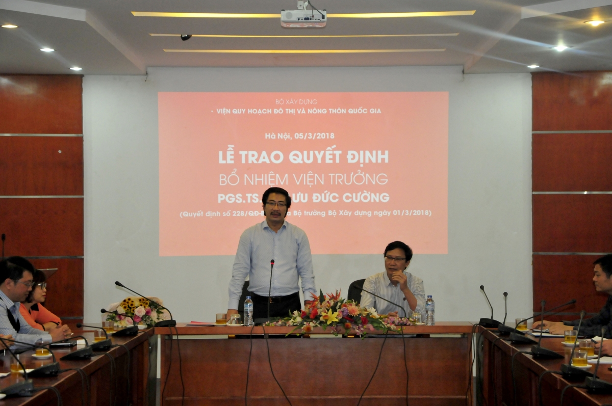 Đồng chí Lưu Đức Cường đã bày tỏ sự cảm kích được lãnh đạo Bộ tin tưởng bổ nhiệm giữ chức vụ Viện trưởng. Viện trưởng cho biết đã nhận thức được việc nâng cao chất lượng mới giữ được thương hiệu của Viện nên trong các cuộc họp gần đây đã đưa ra mục tiêu năm 2018 là năm VIUP quyết tâm đổi mới, nâng cao chất lượng đề tài NCKH, dự án sự nghiệp kinh tế, đồ án quy hoạch và từ đó Viện sẽ triển khai những bước thực hiện cụ thể. Ông hứa sẽ toàn tâm toàn ý làm hết sức mình, không phụ lòng tin của lãnh đạo Bộ và của tập thể cán bộ VIUP. Viện trưởng mong sẽ luôn nhận được sự ủng hộ của Thứ trưởng, sự đồng lòng của cán bộ VIUP để hoàn thành xuất sắc nhiệm vụ được giao.