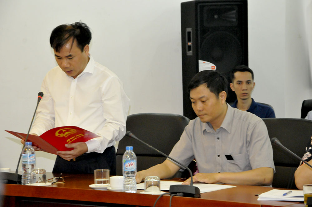 PVT Phạm Thị Thanh Hoa đọc biên bản bàn giao nguyên tắc giữa Nguyên Viện trưởng Ngô Trung Hải và Quyền Viện trưởng Lưu Đức Cường