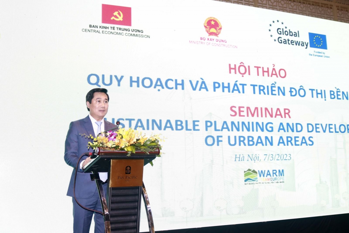 Ngay sau khi Nghị quyết 06-NQ/TW được ban hành, thực hiện nhiệm vụ Chính phủ giao, Bộ Xây dựng đã phối hợp với các Bộ, ngành liên quan và các địa phương tham mưu, xây dựng và trình Chính phủ ban hành Nghị quyết số 148/NQ-CP ban hành Chương trình hành động thực hiện Nghị quyết số 06-NQ/TW của Bộ Chính trị. Phát huy vai trò thường trực trong hợp tác quốc tế lĩnh vực phát triển đô thị, Bộ Xây dựng đã tích cực tham gia các hoạt động hợp tác, trao đổi kinh nghiệm với bạn bè quốc tế, trong đó có Pháp và các nước EU. Thứ trưởng Nguyễn Tường Văn mong muốn các chuyên gia, đại biểu tham dự hội thảo sẽ thiết thực đóng góp nhiều kinh nghiệm quý, nhiều gợi ý hay, nhiều đề xuất hiệu quả cho công tác quy hoạch, xây dựng và quản lý phát triển bền vững đô thị Việt Nam.
