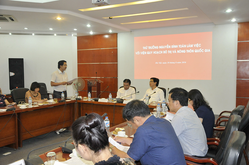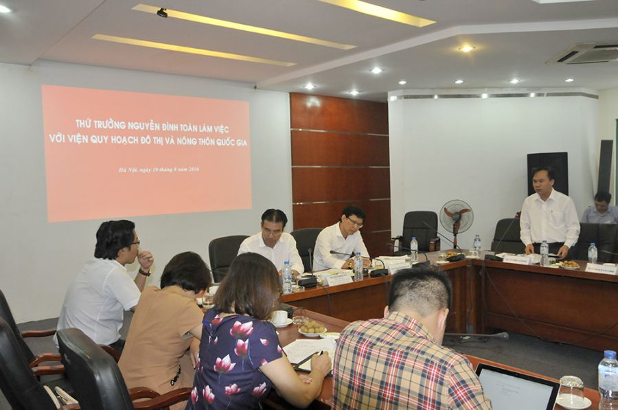 Kết luận buổi làm việc, Thứ trưởng Nguyễn Đình Toàn đã có ý kiến chỉ đạo sâu sát đối với các Vụ chức năng nhằm tháo gỡ những khó khăn, tồn tại của đơn vị trong việc ký hợp đồng, giải ngân, nghiệm thu... Bên cạnh đó, Thứ trưởng đánh giá Viện có sự phát triển vững vàng, bề dày truyền thống. Tuy nhiên, Viện cũng cần tạo ra những thay đổi mạnh mẽ hơn nữa trong các mặt hoạt động. Cụ thể, với vai trò Viện đầu ngành quốc gia về lĩnh vực quy hoạch xây dựng, Viện cần nâng cao vai trò của mình trong lĩnh vực quản lý Nhà nước, soạn thảo văn bản pháp luật cả về quy chuẩn, tiêu chuẩn, tham gia trả lời các văn bản của địa phương, doanh nghiệp một cách tích cực và nhanh chóng.
