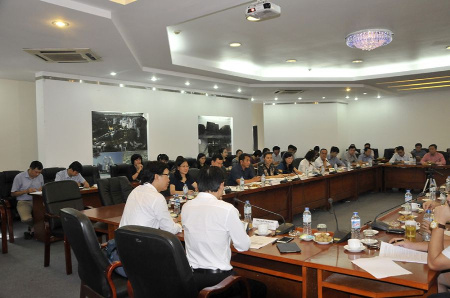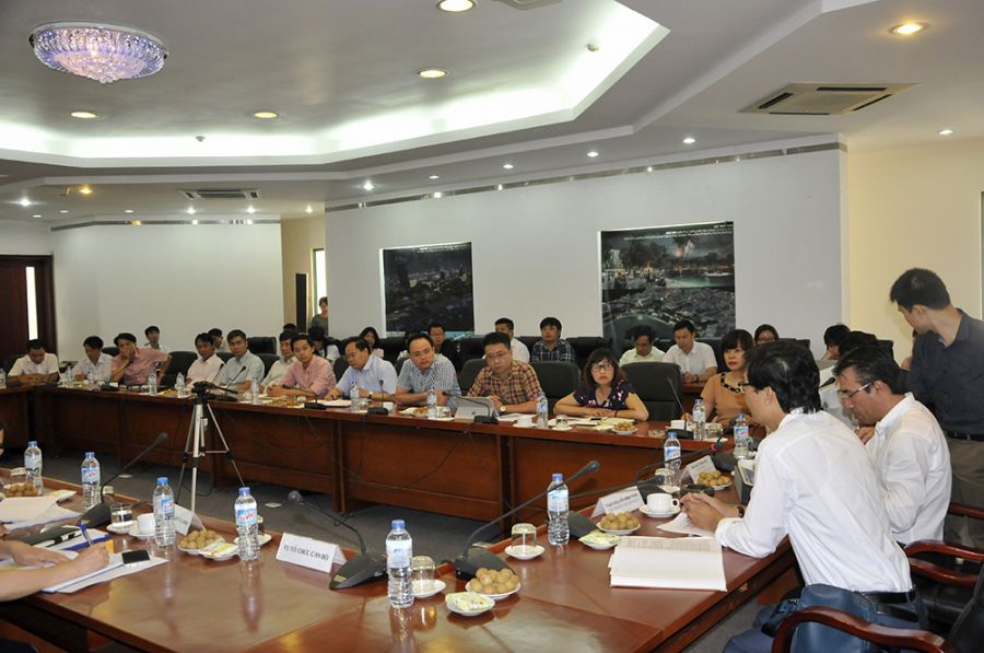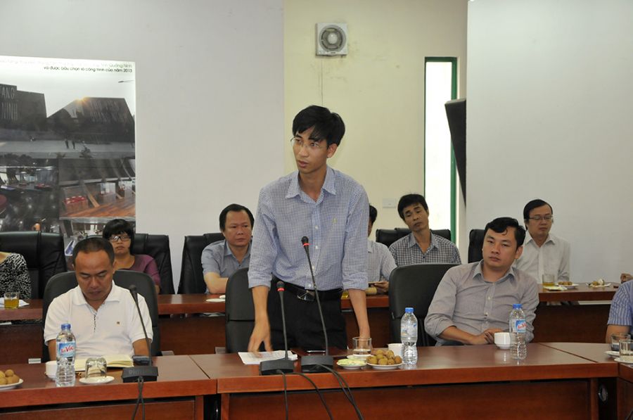 Thứ trưởng Nguyễn Đình Toàn cùng các thành viên của đoàn được nghe các đồng chí lãnh đạo Viện, đại diện các đơn vị, đóng góp ý kiến, chia sẻ những vướng mắc, kiến nghị đối với Bộ Xây dựng