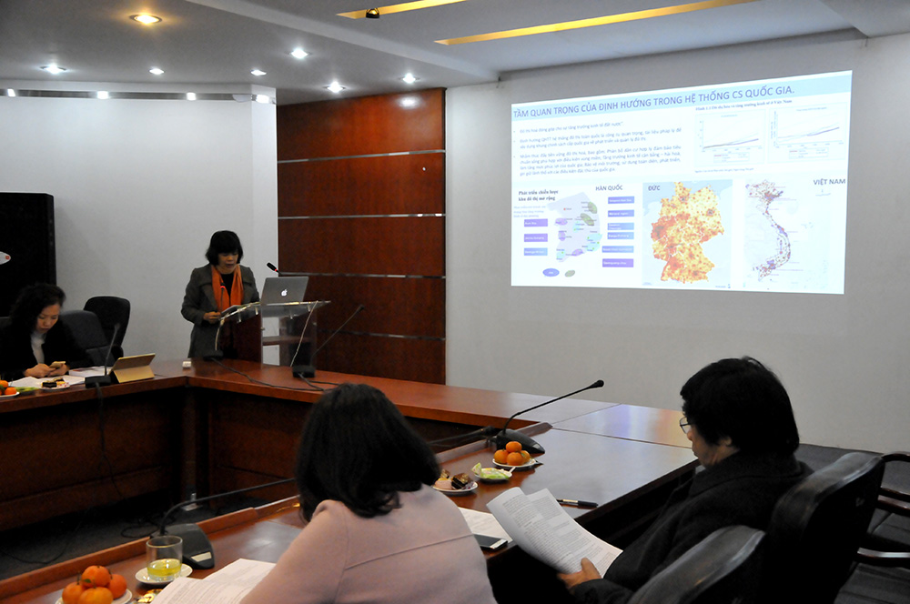 Tại tọa đàm, Phó Viện trưởng Phạm Thị Nhâm đã trình bày đề cương chi tiết “Điều chỉnh định hướng quy hoạch tổng thể phát triển hệ thống đô thị Việt Nam đến năm 2035 và tầm nhìn đến năm 2050” (Có tính đến BĐKH). Trong đề cương đề cập tới sự cần thiết điều chỉnh định hướng được Thủ tướng Chính phủ ban hành tại quyết định số 445/QĐ-TTg năm 2009; Khái quát rà soát việc triển khai thực hiện định hướng theo quyết định 445/QĐ-TTg (các mặt đạt được, tồn tại, cơ hội và thách thức mới; Nội dung đề cương chi tiết gồm 6 chương: Rà soát đánh giá thực trạng phát triển đô thị theo QĐ 445; Mục tiêu và quan điểm; Định hướng quy hoạch tổng thể phát triển hệ thống đô thị Việt Nam đến năm 2035, tầm nhìn 2050 (có tính đến yếu tố BĐKH); BĐKH tác động đến hệ thống đô thị; Khung chiến lược – chính sách; Tổ chức thực hiện.