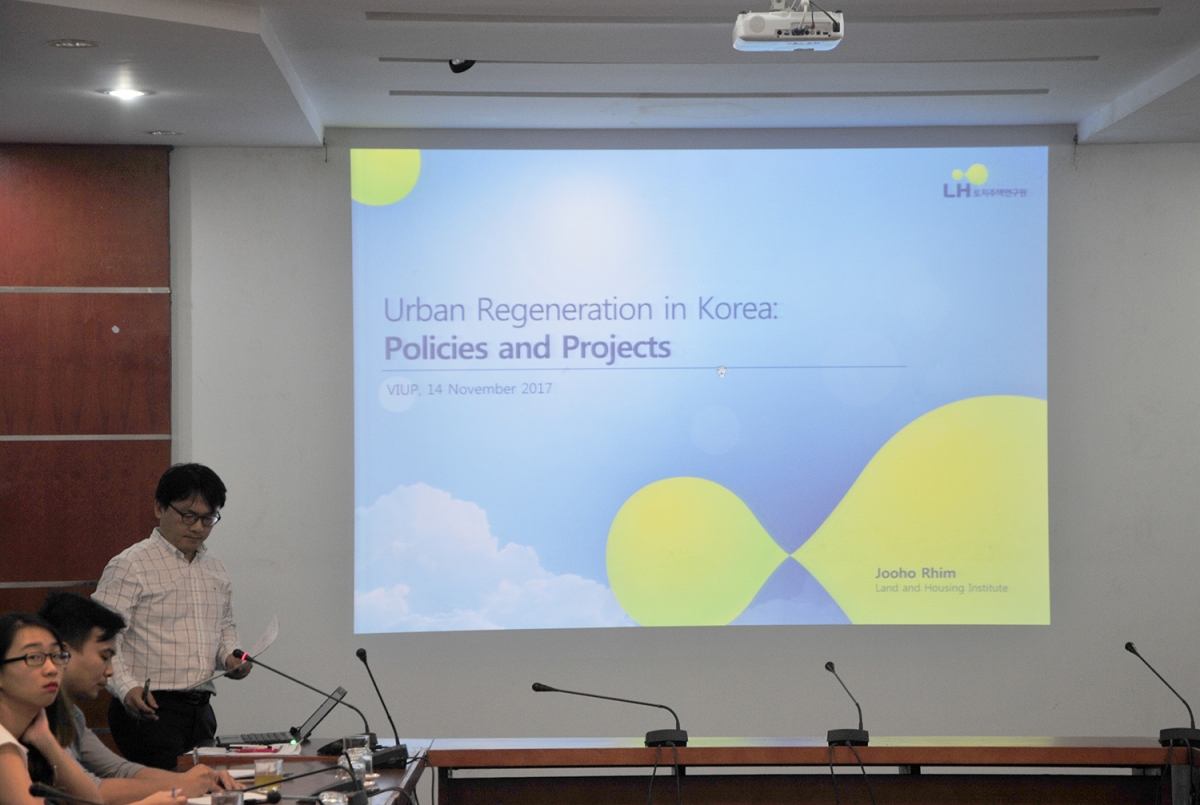 Tiếp đó, TS. Young-il Song - Viện Đất đai và Nhà ở Hàn Quốc đã trình bày về Kinh nghiệm phát triển khu đô thị mới và tăng cường hiệu quả tại Hàn Quốc. Các đại biểu được nghe bài Tái thiết đô thị tại Hàn Quốc: Chính sách và dự án do TS. Joo-ho Lim thuộc LHI trình bày. Các bài trình bày đã giới thiệu kỹ các dự án phát triển mới và tái thiết đô thị, từ chính sách đối với các loại hình dự án, các yêu cầu đối với các khu đô thị, cách thức huy động nguồn lực, phân bổ lợi nhuận...