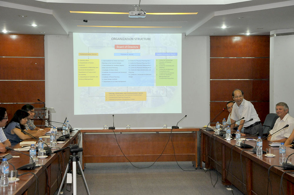 Tiếp đó, hai bên trao đổi về công tác lập quy hoạch do VIUP thực hiện, mối liên hệ giữa quy hoạch du lịch trong quy hoạch xây dựng. PGS.KTS Lưu Đức Cường đã giới thiệu đồ án quy hoạch tại thành phố Cần Thơ do VIUP thực hiện mà đạt được thành công trong việc phát triển du lịch theo đề xuất trong đồ án, những khó khăn trong công tác quy hoạch ở Việt Nam hiện nay cũng như trả lời nhiều câu hỏi mà các giáo sư và sinh viên quan tâm.