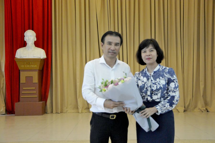 Lãnh đạo viện tặng hoa chúc mừng