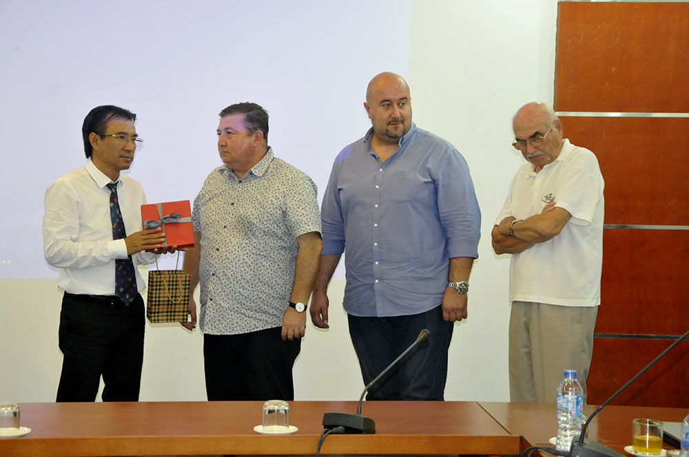 Viện trưởng Ngô Trung Hải tặng quà lưu niệm nhân buổi gặp gỡ