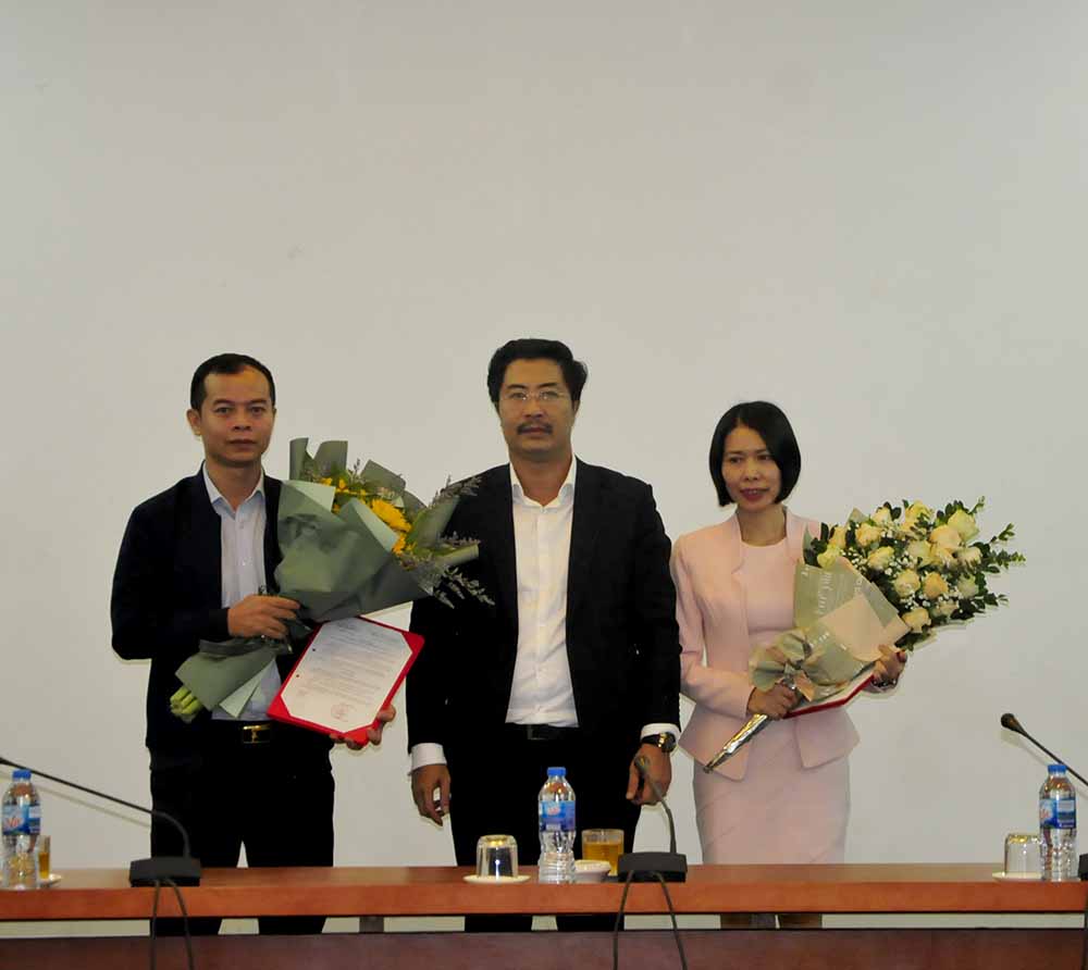 Viện trưởng Lưu Đức Cường chúc mừng và dặn dò 2 cán bộ mới bổ nhiệm