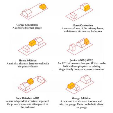 ADU (Accessory Dwelling Unit) là một đơn vị nhà bổ sung, được xây dựng trên một lô đất đã có sẵn một ngôi nhà trên đó. Như cái tên của mình, một ADU thường nhỏ hơn ngôi nhà đã có trên lô đất, nằm trong khoảng từ 500 – 1000 sf (~ 46-93 m²). ADU có tất cả các không gian như một ngôi nhà tiêu chuẩn, đầy đủ tiện nghi cần thiết để người thuê có thể sống thoải mái như: nhà bếp, phòng tắm, không gian sinh hoạt/ ngủ nghỉ và lối vào tách biệt hoàn toàn với căn hộ chính, đảm bảo được sự riêng tư cho người thuê. Mặc dù ADU có đủ hình dạng, kích cỡ nhưng phổ biến nhất vẫn là dạng cấu trúc tách rời. Đôi khi, những căn ADU được xây mới hoàn toàn, tách biệt và đôi khi, chúng được chuyển đổi từ gara để xe/kho chứa đồ trước đây của chủ nhà. Các dạng ADU khác thường thấy là cấu trúc gắn liền, giống như những căn hộ siêu nhỏ được xây dựng ở phía sau của một ngôi nhà, chung một bức tường với căn chính.