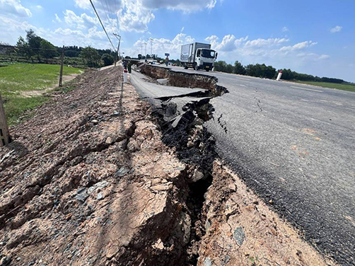 Sự cố sụt lún khu vực cầu Hòa Bình, tỉnh Tây Ninh xảy ra hồi tháng 5/2025 - Ảnh: Mỹ Quỳnh