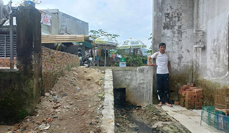 Mặt đường kiêm cống thoát nước cao hơn nền nhà ở Khe Cạn.