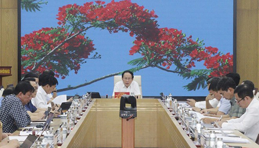 Bí thư Thành ủy Lê Tiến Châu chủ trì phiên họp. Ảnh: Cổng TTĐT Hải Phòng