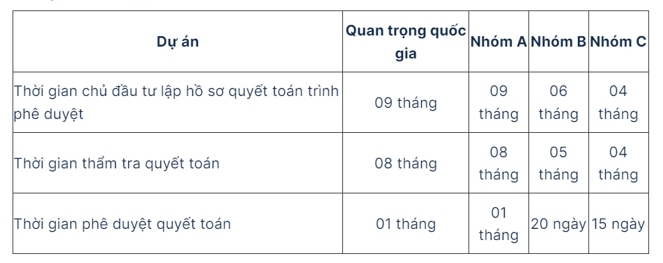 Thời gian lập hồ sơ, thẩm tra, phê duyệt quyết toán vốn đầu tư công dự án hoàn thành