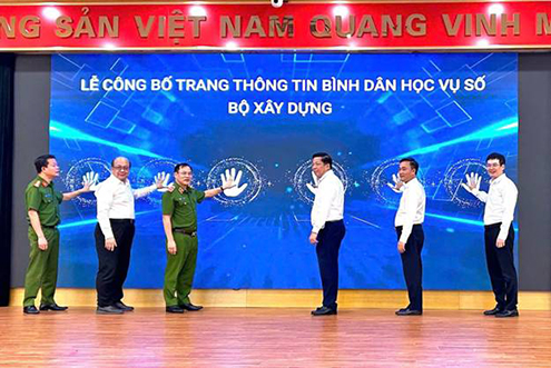 Lãnh đạo Bộ Xây dựng và Bộ Công an thực hiện nghi thức bấm nút khai trương Trang thông tin Bình dân học vụ số Bộ Xây dựng.
