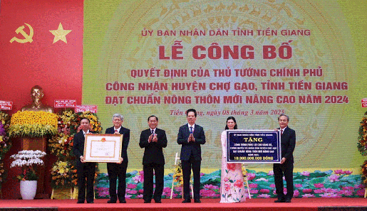 Tại cuộc họp, 100% đại biểu tham dự đã bỏ phiếu thống nhất trình Trung ương xét công nhận tỉnh Tiền Giang hoàn thành nhiệm vụ xây dựng NTM năm 2024.