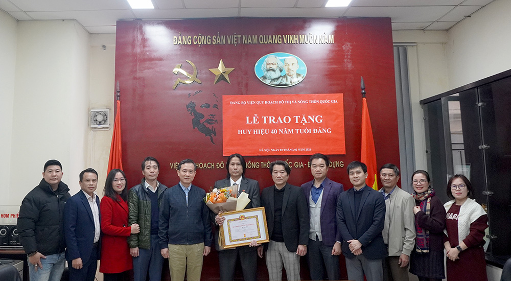 Ngày 03/02/2026, nhân dịp kỷ niệm 96 năm ngày thành lập Đảng Cộng sản Việt Nam (3/2/1930 -3/2/2026), Đảng bộ Viện Quy hoạch đô thị và nông thôn quốc gia (VIUP) tổ chức Lễ trao tặng Huy hiệu 40 năm tuổi Đảng cho đồng chí Hồ Sao Mai - đảng viên thuộc chi bộ phòng Tổ chức - Hành chính. Dự buổi lễ có đồng chí Hoàng Vĩnh Hưng, Bí thư đảng ủy– Viện trưởng VIUP, các đồng chí trong đảng ủy Viện và các đảng viên trong chi bộ.