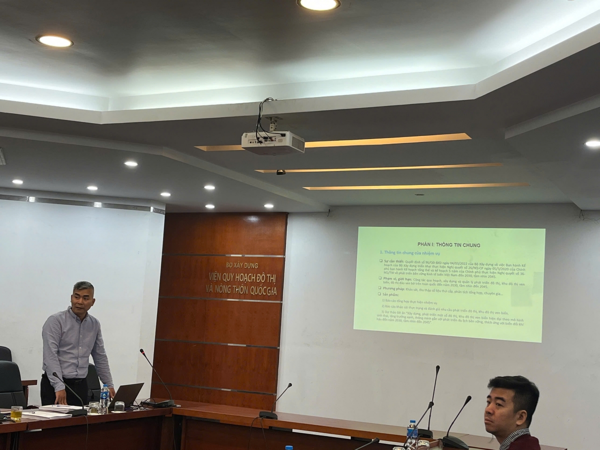 TS.KTS Nguyễn Trung Dũng - Chủ nhiệm nhiệm vụ đã báo cáo tóm tắt nội dung chính của nhiệm vụ. Theo đó, VIUP thực hiện nhiệm vụ sự nghiệp kinh tế này để làm căn cứ về cơ sở khoa học và thực tiễn xây dựng Đề án “Xây dựng, phát triển một số đô thị, khu đô thị ven biển hiện đại theo mô hình sinh thái, tăng trưởng xanh, thông minh gắn với phát triển du lịch bền vững, thích ứng với biến đổi khí hậu đến năm 2030, tầm nhìn đến năm 2045”. Đây là nhiệm vụ quan trọng mà Bộ Xây dựng giao cho VIUP phối hợp với Cục Phát triển đô thị thực hiện trong Kế hoạch triển khai thực hiện Nghị quyết 36-NQ/TW của Trung ương và Nghị quyết 26/NQ-CP của Chính phủ về chiến lược phát triển bền vững kinh tế biển nước ta và đồng thời góp phần phát triển bền vững hệ thống đô thị quốc gia.