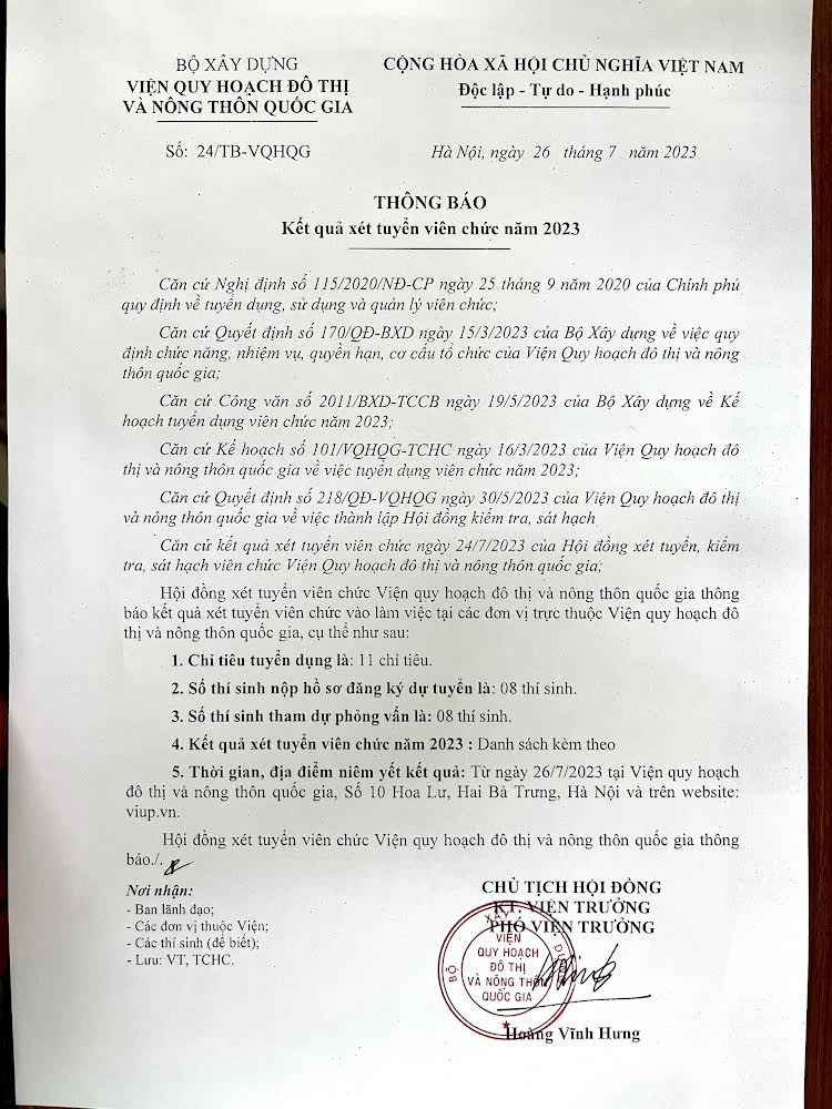 Thông báo kết quả xét tuyển viên chức năm 2023