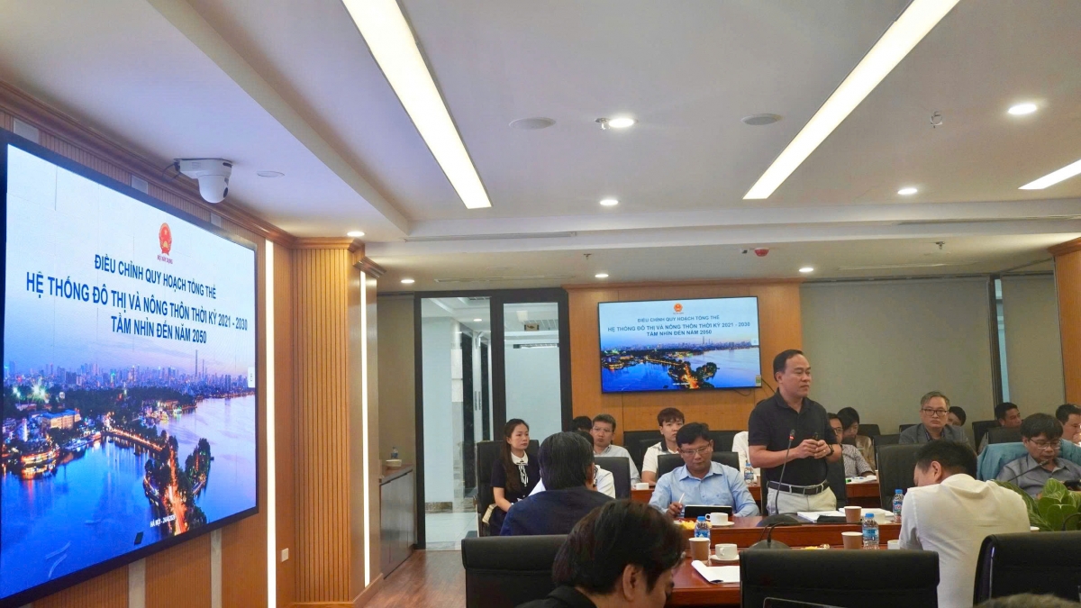 Tại Hội thảo, ThS.KTS Lê Anh Dũng – Giám đốc Trung tâm QHXD khu vực 3, thay mặt nhóm nghiên cứu đã trình bày Báo cáo đánh giá kết quả thực hiện Quy hoạch hệ thống đô thị và nông thôn thời kỳ 2021-2030, tầm nhìn đến năm 2050 và Phương án điều chỉnh Quy hoạch hệ thống đô thị và nông thôn thời kỳ 2021-2030, tầm nhìn đến năm 2050. Theo đó, mục tiêu điều chỉnh quy hoạch tập trung vào việc: Rà soát, cập nhật và hoàn thiện định hướng phát triển hệ thống đô thị và nông thôn quốc gia, bảo đảm phù hợp với bối cảnh phát triển và mô hình tổ chức lãnh thổ mới; Củng cố và hoàn thiện cấu trúc hệ thống định cư quốc gia theo mô hình mạng lưới đa trung tâm, đa cực; làm rõ các cấu trúc không gian và mối quan hệ liên kết trong hệ thống; Làm rõ vai trò, chức năng và phân bố hệ thống đô thị và nông thôn theo không gian phát triển, gắn với các cực tăng trưởng, vùng động lực và các hành lang kinh tế - đô thị; Hoàn thiện cơ sở khoa học và pháp lý cho việc nhận diện, phân loại và quản lý đô thị, phù hợp với quy định pháp luật hiện hành và yêu cầu thực tiễn; Làm cơ sở cho việc tổ chức phát triển và quản lý không gian đô thị và nông thôn trên phạm vi cả nước, nâng cao hiệu quả sử dụng nguồn lực.