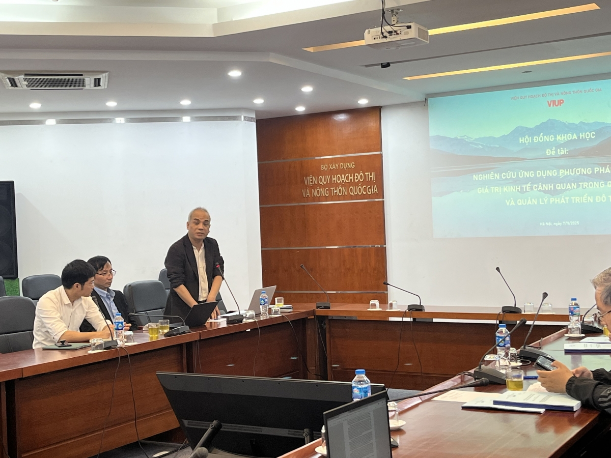 Thay mặt nhóm nghiên cứu, ThS.KTS Nguyễn Xuân Anh – Chủ nhiệm nhiệm vụ báo cáo tóm tắt nội dung nhiệm vụ. ThS.KTS Nguyễn Xuân Anh cho biết, ở Việt Nam quy hoạch đô thị nói chung chưa xem xét giá trị cảnh quan như một lĩnh vực kinh tế. Tuy nhiên, thông qua nghiên cứu và nhìn nhận giá trị kinh tế của cảnh quan như một nguồn lực phát triển, người ta có thể kế hoạch hóa việc duy trì khai thác cảnh quan như một vòng đời dự án, mà trong đó giá trị nó mang lại cho đô thị có thể quay lại để tái đầu tư cho chăm sóc, bảo dưỡng, vận hành và khai thác cảnh quan một cách bền vững, đồng thời nâng cao chất lượng sống cho con người.