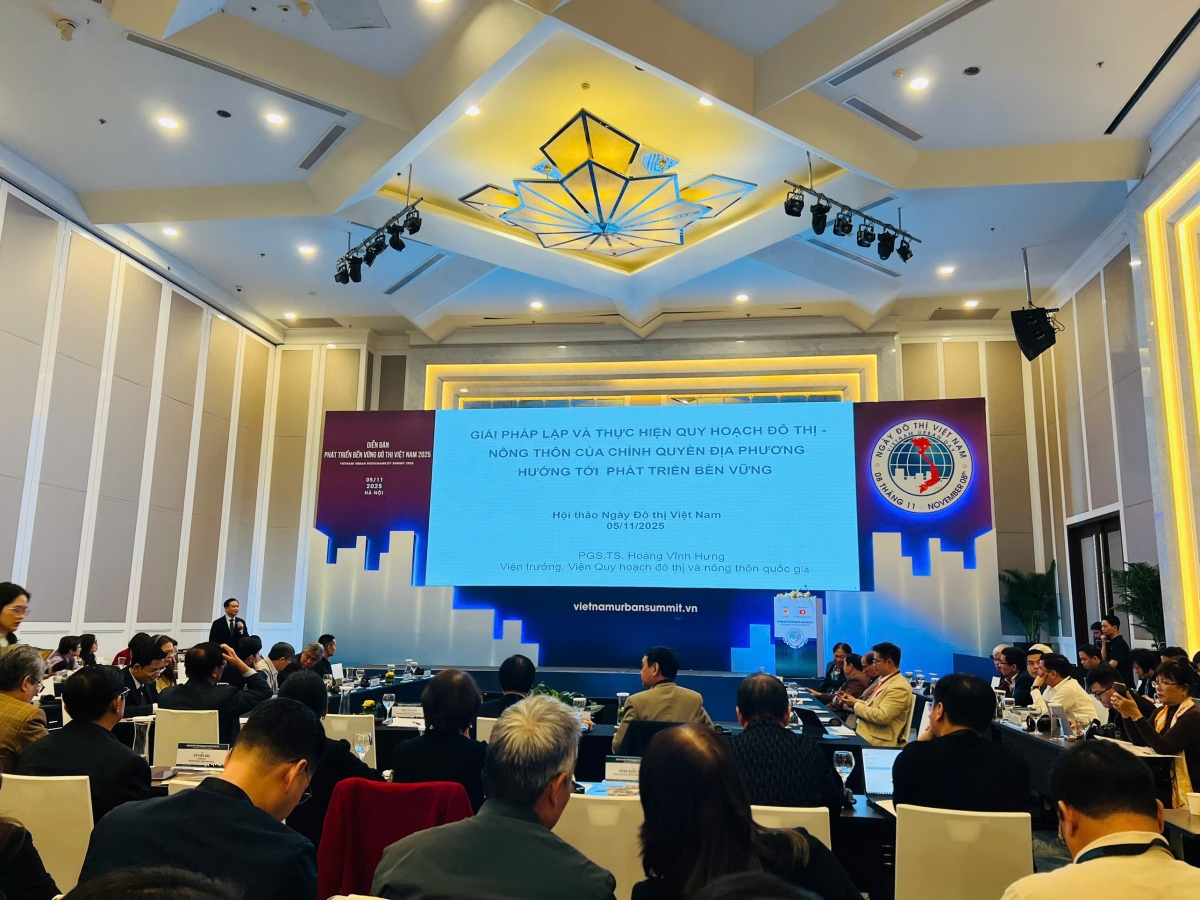 Tại chuyên đề 3 “Quy hoạch và quản trị đô thị hiện đại nâng cao chất lượng sống đô thị Việt Nam”, Viện trưởng Hoàng Vĩnh Hưng đã trình bày tham luận với chủ đề “Giải pháp lập và thực hiện quy hoạch đô thị - nông thôn của chính quyền địa phương hướng tới phát triển bền vững”. Nội dung chính tập trung vào tổng quan về đô thị hóa, những thách thức trong quá trình đô thị hóa và các giải pháp của chính quyền địa phương để đối phó với các thách thức này.