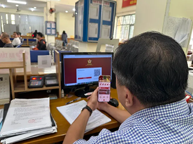 Cán bộ phường Thông Tây Hội, TPHCM đang thực hiện tiếp nhận hồ sơ trực tuyến. Ảnh: THANH HIỀN