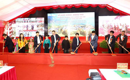 Lãnh đạo Trung ương, địa phương khởi công trường nội trú liên cấp tại xã biên giới Nghĩa Thuận. Ảnh: ST