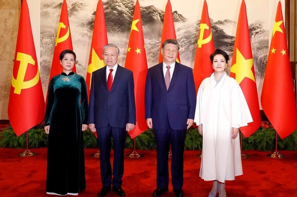 Tổng Bí thư, Chủ tịch nước Tô Lâm và Phu nhân cùng Tổng Bí thư, Chủ tịch nước Trung Quốc Tập Cận Bình và Phu nhân chụp ảnh chung (Ảnh: Thống Nhất – TTXVN).